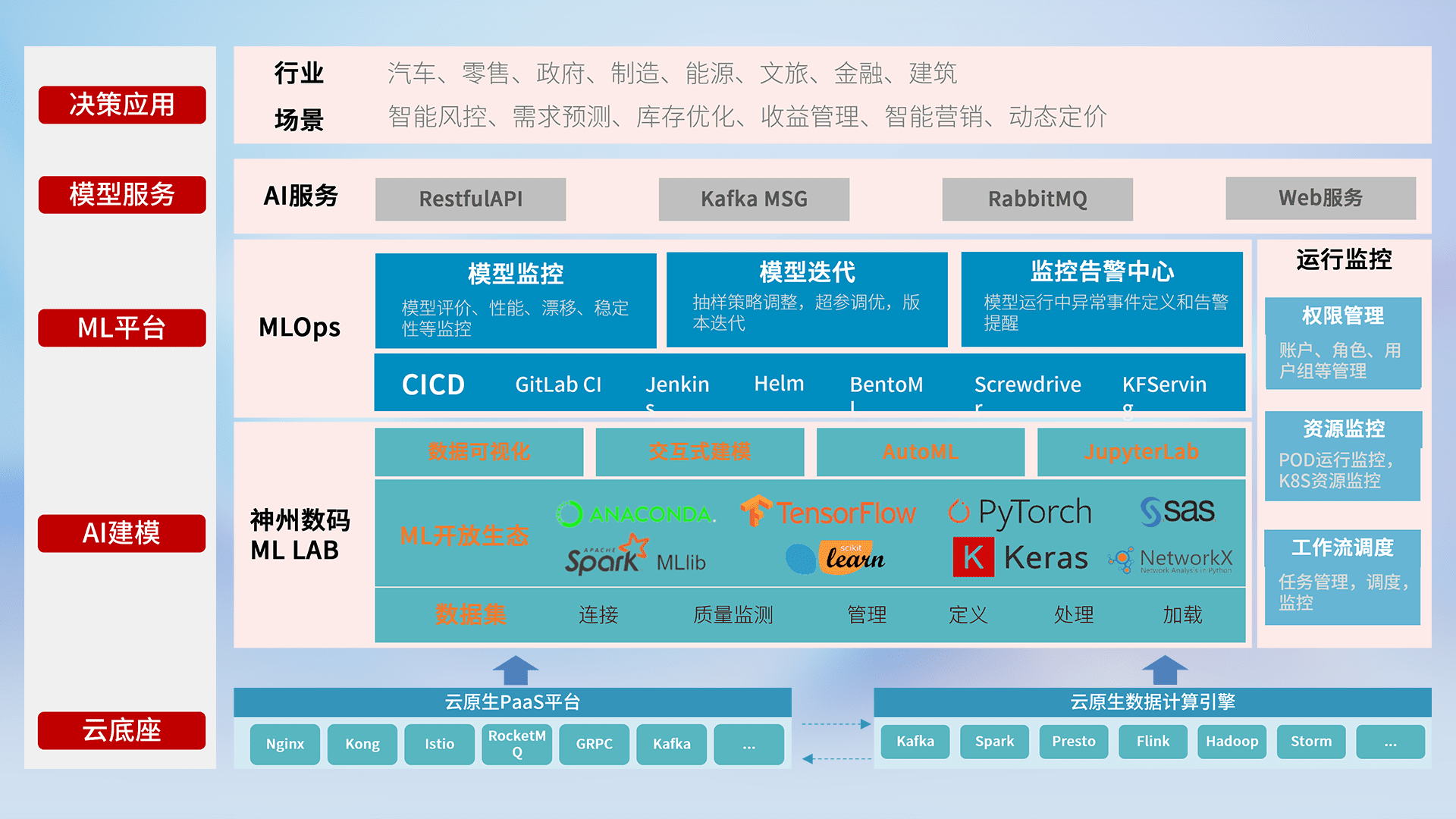 数据+模型双引擎驱动,,面向智能服务场景,,快速灵活利用AI技术,,支持业务决策,,,助力企业智能化转型破局。。。。